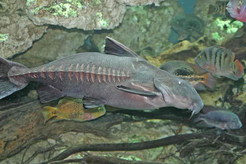 Groß werdende Welse wie Rhamdia spec., Pseudodoras niger und Glyptoperichthys gibbiceps runden das Ganze ab. Natürlich vermehren sich in einem so großen Aquarium mit vielen Revier- und Fluchtmöglichkeiten die Cichliden mit rasanter Geschwindigkeit. Der klare Sieger war wieder einmal A. citrinellus. Diese Art schafft es einfach, in jedem Großbecken ihre Vielzahl von Jungfischen trotz zahlreicher Freßfeinde „durchzubekommen“. Wer Berthold Weber kennt oder das Steinhart-Aquarium in San Franzisko, weiß, wovon ich spreche. Irgendwann sind nur noch gelborange Fische im Becken.